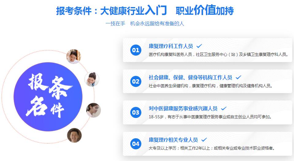 报考条件:大健康行业入门、职业价值加持、技术在手、机会永远留给有准备的人。